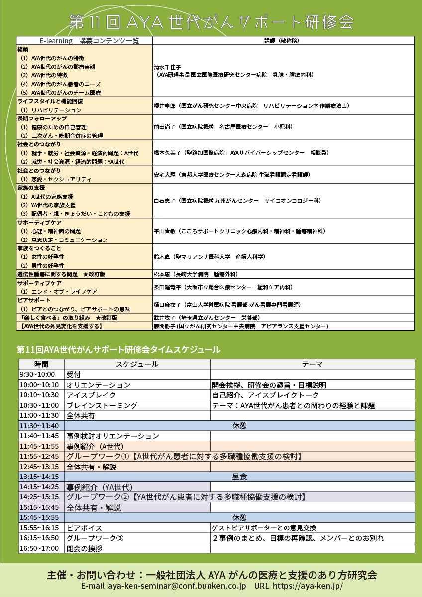目 的:AYAがんに関する基本的な知識を身につけ,個人のスキルアップを図ることを目的としています。